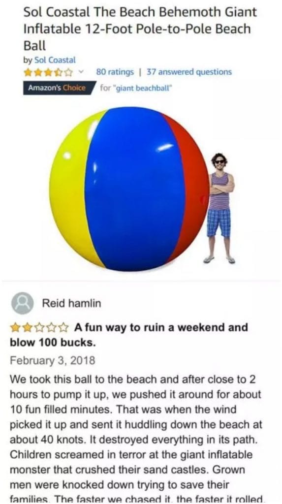 そんな日もあるさ。一瞬で地獄へと変わってしまったある日の出来事46選 TrendingMay 10, 2023 巨大ビーチボールのレビュー 成人男性の二倍はありそうな巨大ビーチボール。空気入れに2時間もかかるのも納得です。 真夏の海辺を恐怖の叫び声と絶望に染めたかったら、この商品こそが理想的と言えるでしょう。 ⟵戻 次 Related Itemscategory-gallerylang-JP You must be logged in to post a comment Login