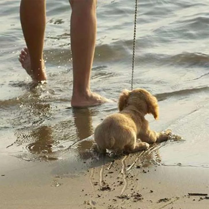 Chociaż psy częściej spędzają czas na plaży ze swoimi właścicielami, ten pies różni się od normy. Nie mógł być mniej podekscytowany pójściem do wody. W rzeczywistości jest tak przerażony, że wykorzystuje całą swoją wagę, aby trzymać się z dala od brzegu.