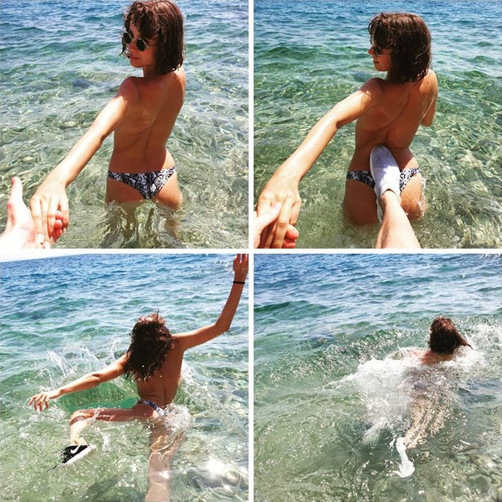 Romantyczne zdjęcie, które wyobraziła sobie ta dziewczyna, nie poszło zgodnie z planem. Przynajmniej jej chłopak zrobił jej jedno zdjęcie takie na jakie czekała. Jednak po zrobieniu zdjęcia chłopak zdecydował się zażartować i wepchnąć ją do wody.