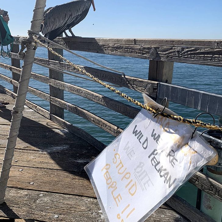 Ten dziki pelikan ostrzega, że jego ulubioną przekąską są głupi ludzie. Jeśli zobaczy, że zachowujesz się jak głupek, ugryzie cię, abyś przestał. Jeśli jesteś osobą, która zachowuje się głupio, możesz omijać tego dzikiego ptaka.