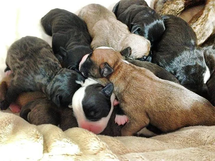 Storie seemed to know exactly what she needed to give birth to her babies. All she wanted was to feel protected and secure. She was able to give birth to twelve healthy puppies because of the foster couple. She is very intelligent. 12 puppies though, is more than a football team!