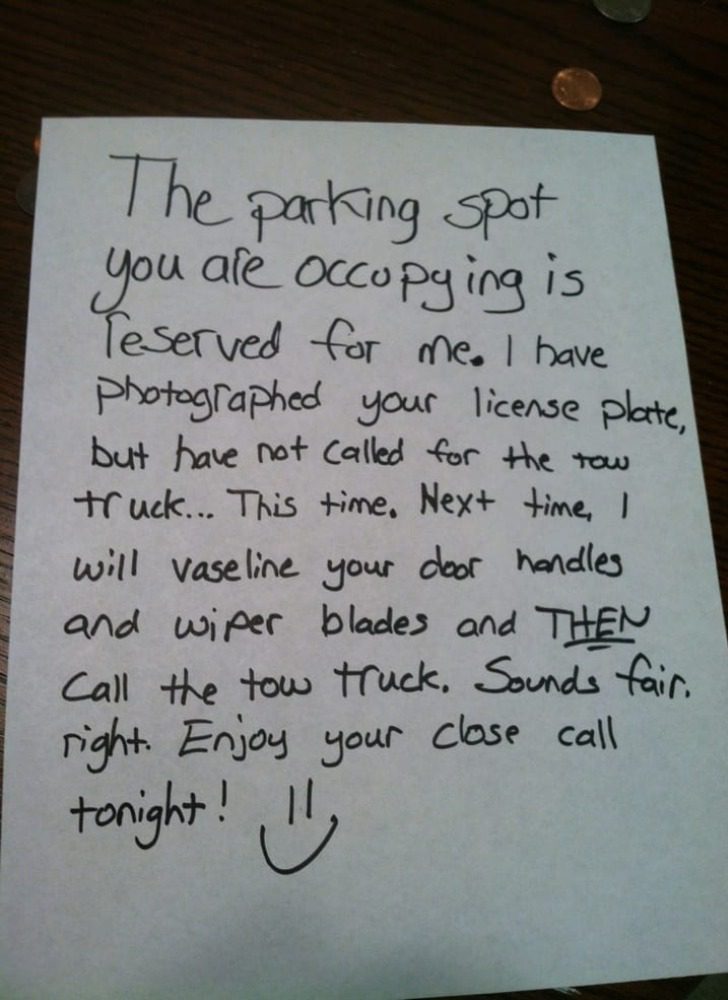 Bilhetes deixados aos maus motoristas que são verdadeiramente épicos