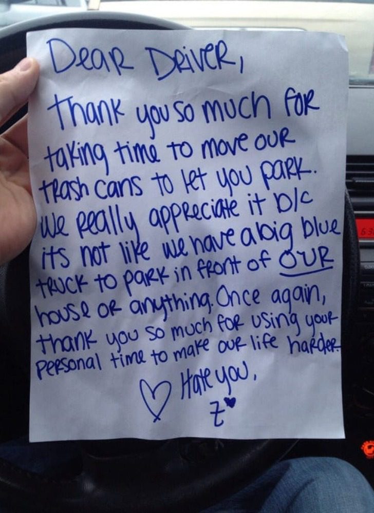 Bilhetes deixados aos maus motoristas que são verdadeiramente épicos