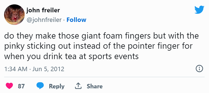 The connection between a foam finger and the pinky gesture of a tea lover lies in their symbolic representation that reflects a person’s affiliation or interest, whether it’s for a sports team or a love for tea.