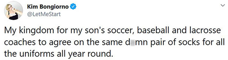 There’s a request for a son’s soccer, baseball, and lacrosse coaches to agree on the same pair of socks all year round. This is because each coach has their own preferred style, length, and sock color that they want.