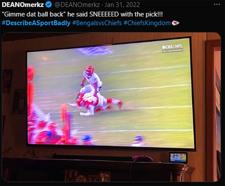 An over-the-top and humorous portrayal of a player’s reaction during a football game elicits laughter and amusement. The tweet blends hype language, playful expressions, and a visual image of players crashing down. It is a hilarious portrayal of a football moment that embraces the fun and unexpected nature of the game.