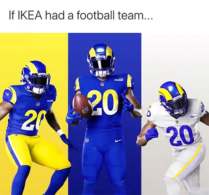 What if Ikea had a football team? Imagine a squad of players in those signature blue and yellow uniforms, running around a field with a bunch of Allen wrenches and Swedish meatballs.
