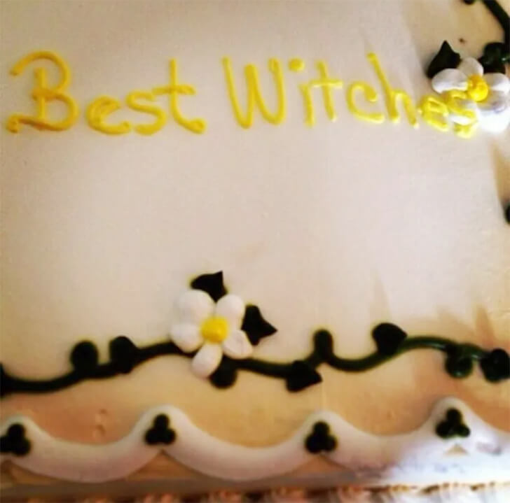 Was passiert, wenn die Person, die für deine Hochzeitstorte verantwortlich ist, deine Sprache nicht perfekt beherrscht? Die Antwort sieht man auf diesem Bild. Anstelle von “Best Wishes”, auf deutsch “Beste Wünsche”, stand auf der Torte schließlich “Best Witches”, was so viel bedeutet wie “Beste Hexen”.