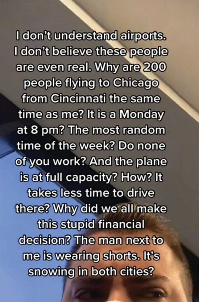 Chicago to Cincinnati flight is one hour and 12 minutes long. The TikToker is incorrect, as driving would take around five hours while taking a bus would be between seven and nine hours.