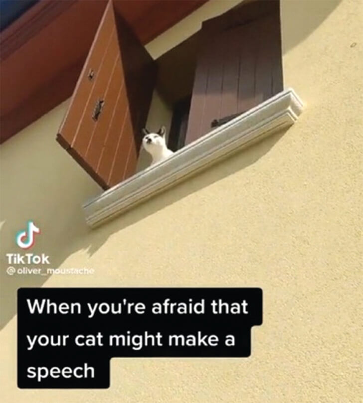 The cat does look like a politician gearing up to appeal to his supporters at a political rally. Cats like to observe their environment, and with the window open, this cat is taking advantage of the situation and exploring the surroundings of their house. Cats have excellent reflexes and can survive falls from great heights.